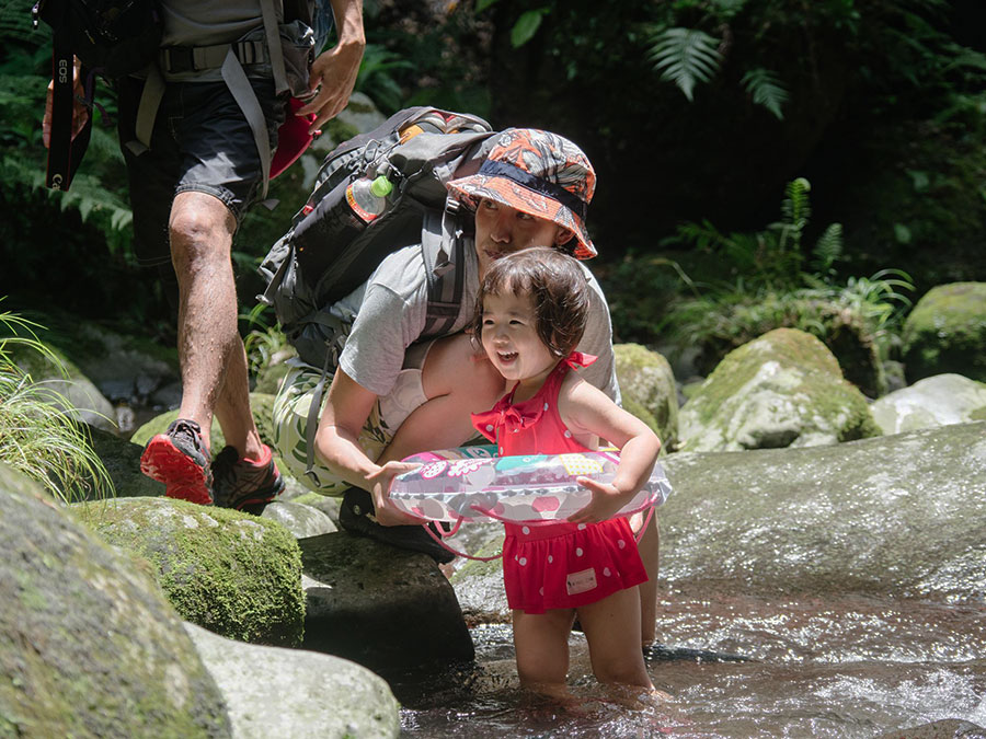また、見ての通り、水の中や足元の悪い岩場を歩くので、沢靴、マリンシューズ、ホールド性のあるスポーツサンダルなどがあった方がいいです。それと夏でも水は冷たいので休憩時に羽織る上着なども必須です。
