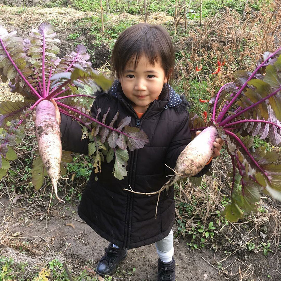 大根を引っこ抜くときの娘がかわいすぎたので、アップしておきます(笑)